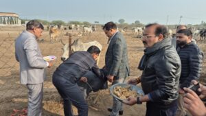 डीएम ने गौशाला पहुंचकर पहनाए काऊ कोट, गुड़ खिलाकर लिया हालचाल