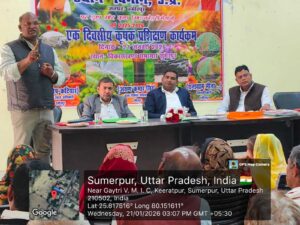 रिपोर्ट संदीप धुरिया हमीरपुर — उद्यान विभाग हमीरपुर द्वारा जनपद में संचालित — “प्रति बूंद अधिक फसल (ड्रॉप मोर क्रॉप)” योजना एवं एकीकृत बागवानी विकास मिशन (MIDH) के अंतर्गत विकासखंड परिसर सुमेरपुर में एक दिवसीय कृषक प्रशिक्षण कार्यक्रम का आयोजन किया गया। कार्यक्रम में जिला उद्यान अधिकारी आशीष कटियार के मार्गदर्शन में प्रशिक्षण संपन्न हुआ।