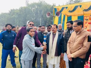 प्रतियोगिता नहीं, बल्कि युवाओं में अनुशासन, समर्पण और आत्मविश्वास जगाने का उत्सव है। दौड़ के हर कदम में संघर्ष है, हर सांस में संकल्प और हर फिनिश लाइन पर नए भविष्य की सीढ़ी है। हमीरपुर का युवा जब मैदान में दौड़ता है, तो वह सिर्फ ट्रैक नहीं नापता, वह अपने सपनों की दूरी तय करता है। कहा कि मोदी और योगी सरकार खेलों को निरंतर बढ़ावा दे रही है। यही कारण है कि भरता के खिलाड़ी अन्य देशों के खिलाड़ियों की भांति शीर्ष पर खड़े हैं। भरता भी अब अन्य देशों की तरह वैश्विक स्तर पर किसी खेल में किसी से कमजोर नहीं है। भारत के खिलाड़ी एक के बाद एक पदक हासिल कर नाम रोशन कर रहे हैं।