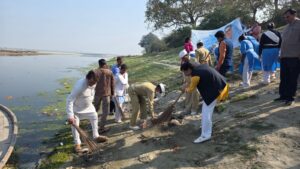 संत निरंकारी मिशन के सेवादारों ने नमामि गंगे के संयोजक शैलेंद्र शरन सिंपल के नेतृत्व में भिटौरा के पक्के घाट में की साफ सफाई।