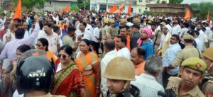 भगवा झण्डे को प्रशासन ने उतरवाया